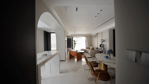 曲线型的拱门造型,既延续了视觉上的纵深感,弧线艺术与光影美学的联合,也焕新了审美体验,氤氲出法式风特有的浪漫气韵。