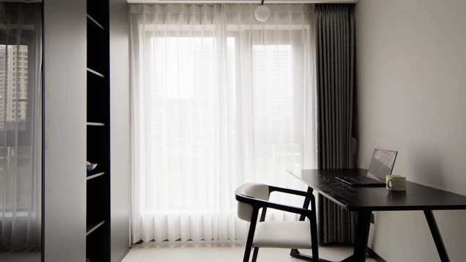 书房以黑色与灰色搭配为主,纯粹的配色与精简的陈设,赋予空间安静、雅致的气度,无论是视觉还会功能,都让阅读空间的舒适度也达到了极限。
