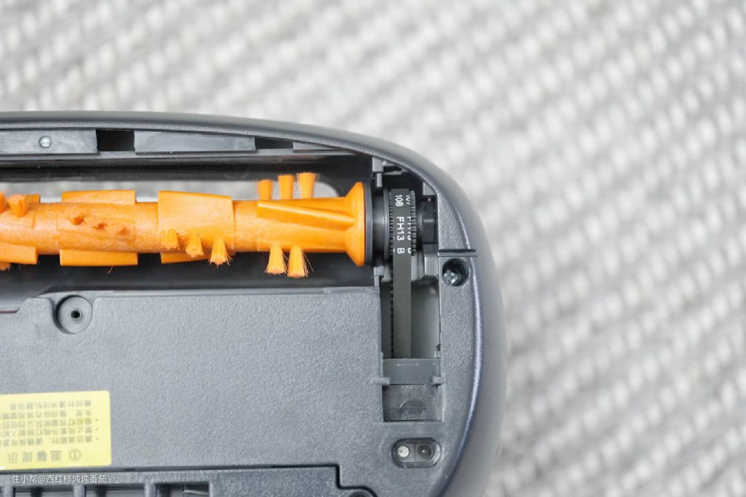 我通过拆卸螺丝,去掉了莱克吉米的主刷挡板,可以看到主刷直接和驱动皮带相连,用户无法自行更换。