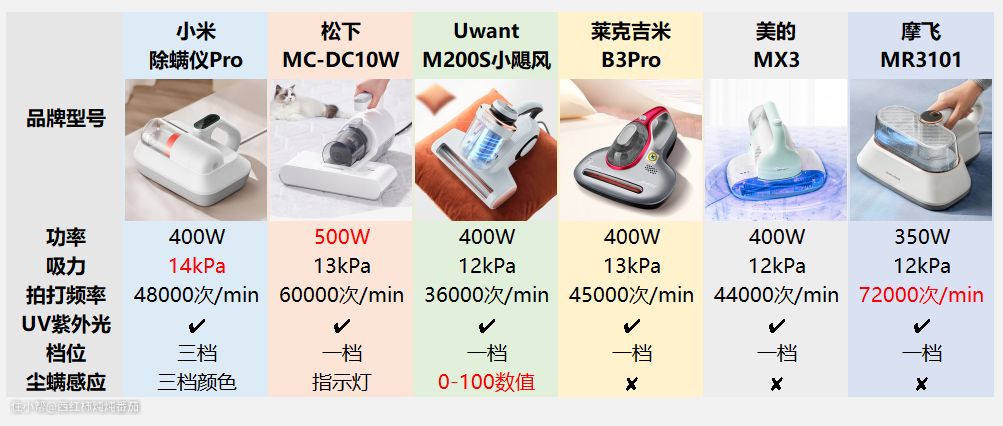 在完成了详细的参数及设计对比和性能实测之后,我们再来分析并点评一下这六款除螨仪产品:
