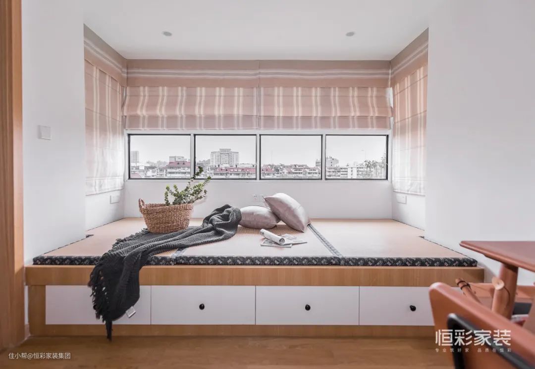 当然啦,原木+白是比较常见的搭配,依着原木本身的温柔效果,那么所选择的白也一定要是带着暖调的效果。如果选择了冷白调,就很容易拉低整个日式原木的温馨感。