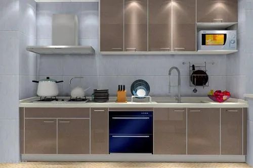 4.一字型隐藏式橱柜:非常适合小户型设计,顶柜、地柜+开放柜多种收纳组合,拿取方便超级实用!