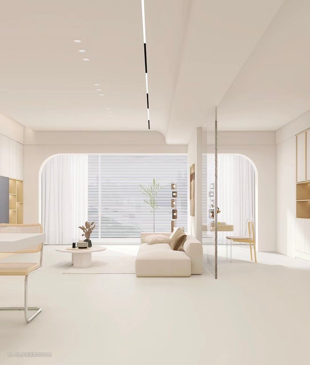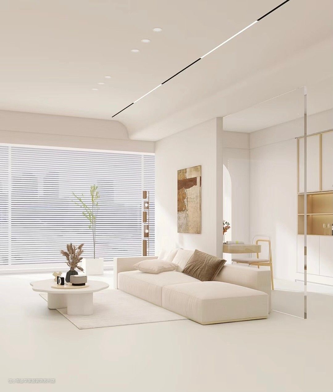 今天的客厅分享主打的就算微水泥×极简风,纯净的奶油白色,随手一拍,便是大片!
