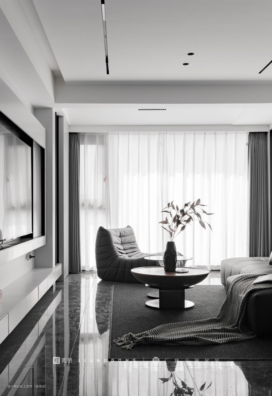 利落的线条打造出界面简洁的电视墙,悬浮造型轻盈别致。纵使没有多余的色彩,黑与白也不会显得单调,取而代之的是几何赋予的艺术韵味。