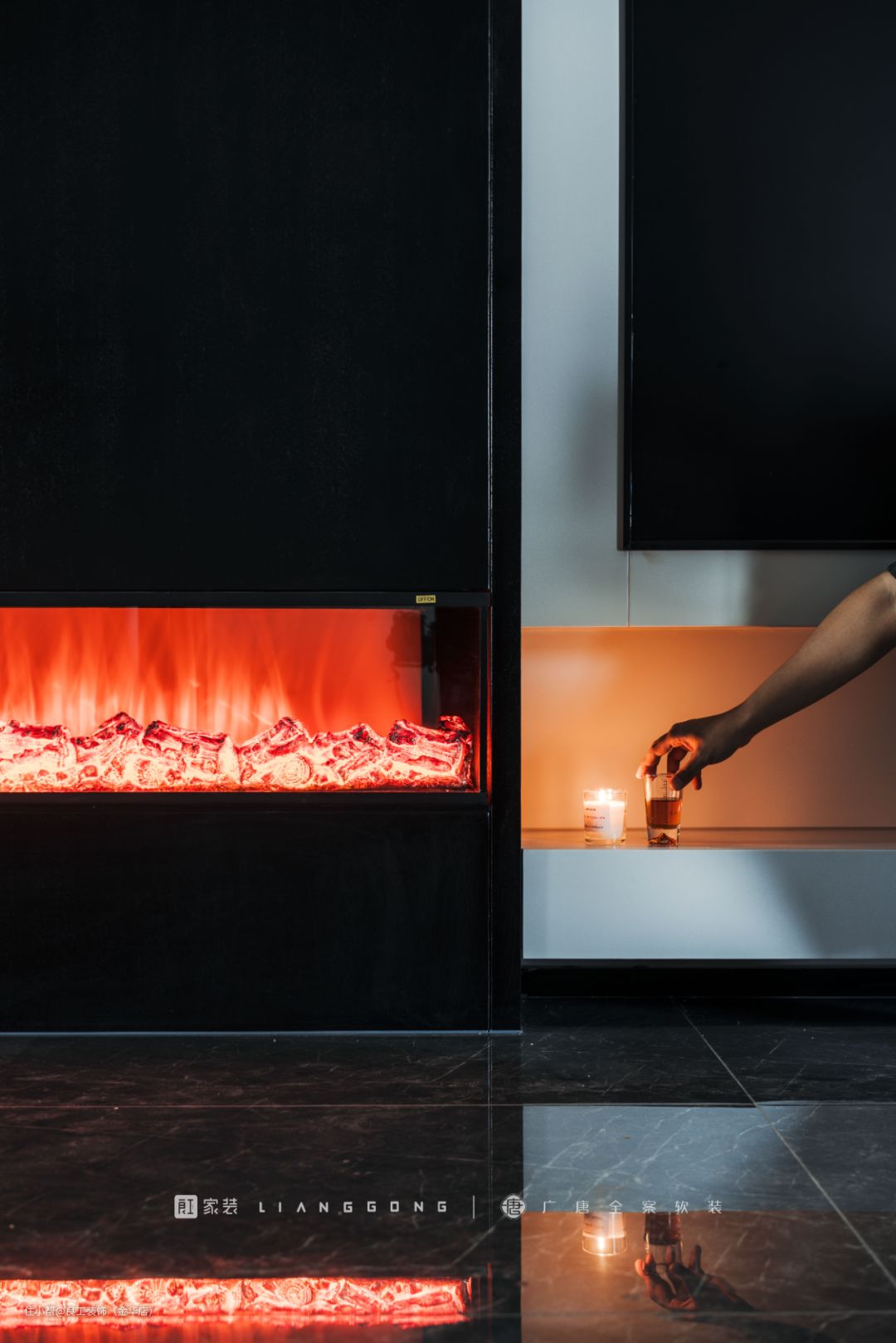 想要突出这种轻盈的悬浮感,通常在悬空电视柜底部安装一条灯带即可。但即使只是一条灯带,也要注意细节。