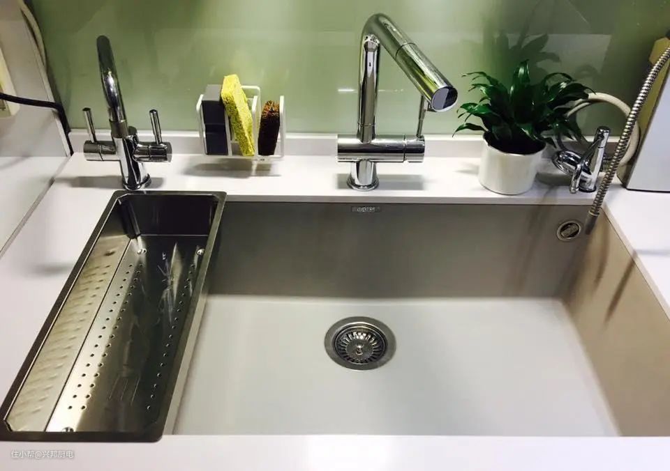 洗碗海绵也有专属位置,水槽摆脱潮湿,从此干净清爽,一般水槽的边缘容易发霉,洗碗海绵放在水槽内经常是潮湿的,为了解决这个问题,我们可以安排一个水槽沥水架,将日常用的洗碗海绵和其他清洁用品放在沥水架上,这就轻松解决了问题。
