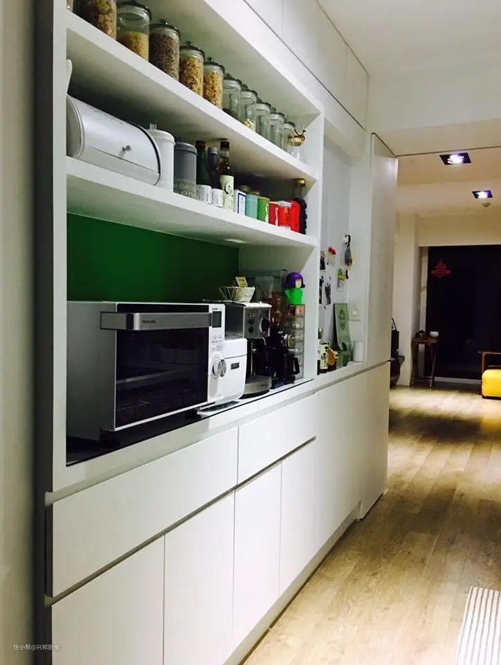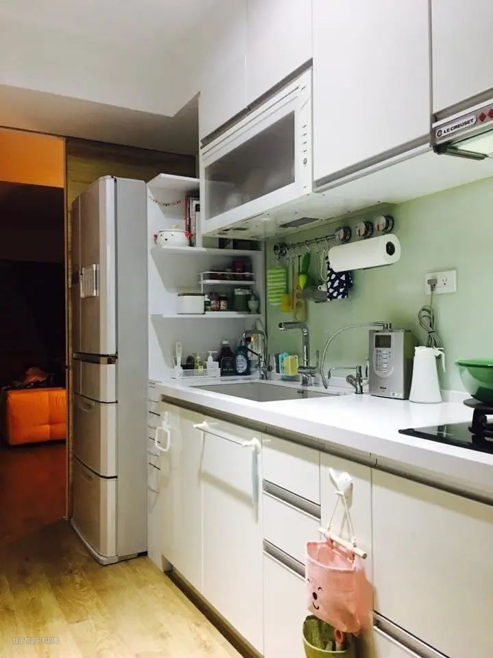 打掉一面墙改做双面柜,可以大大增加厨房收纳能力,虽然最开始会麻烦一些,但后期用起来是真的太好了,为了自己的家投资,非常值得!