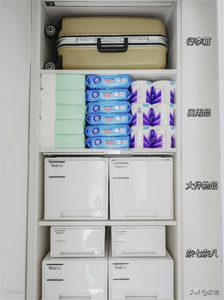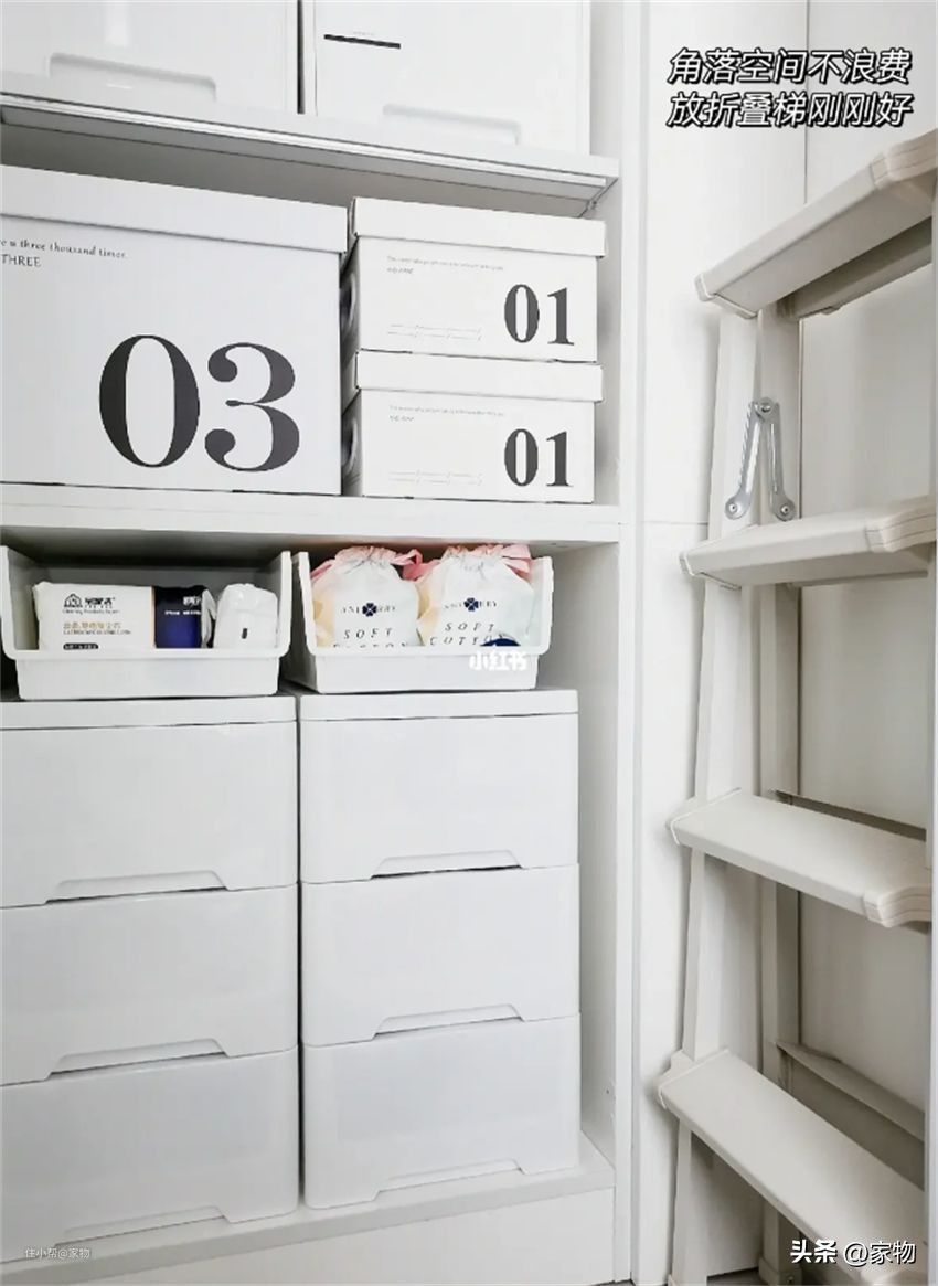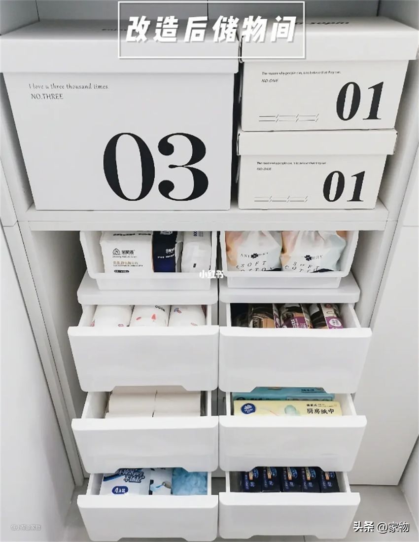 此外将地面铺贴瓷砖,墙面顶面刷乳胶漆变身大白墙,这样一个迷你储物间就诞生了~