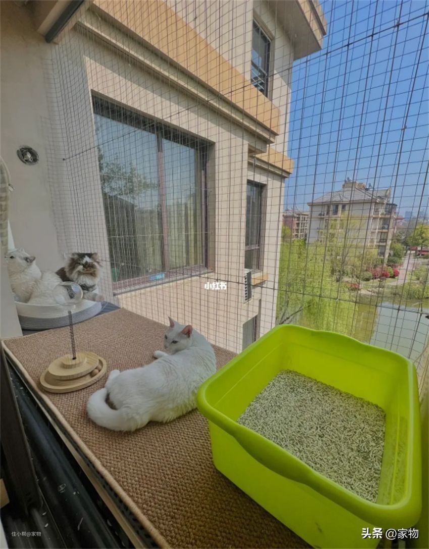 如果外立面空间比较大,也可以将此处作为猫咪活动区,只要防护网固定结实就会很安全,猫咪活动范围扩大,还能随时吹风,真的很不错。