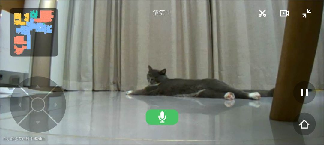 在RGB摄像头的支持下,石头PP拥有了实时视频语音通话功能,这个功能对于我们养了宠物的家庭来说确实非常实用,上班不在家的时候,打开扫拖机器人的摄像头,可以偷偷的观察家里的毛孩子的一举一动。
