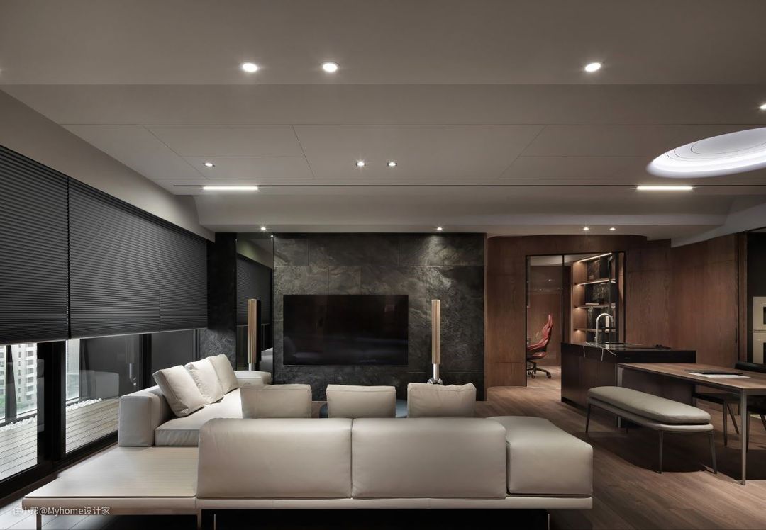林政纬设计师将巧思与艺术融合展现创新思维,运用现代精髓规划142平米居宅空间,透过木质、石材与弧线,在考虑到空间功能性的同时,将细节注入其中,通过弧形、弹性隔屏消弭边界感,也给居住者带来了更多的交互活力和选择自由。