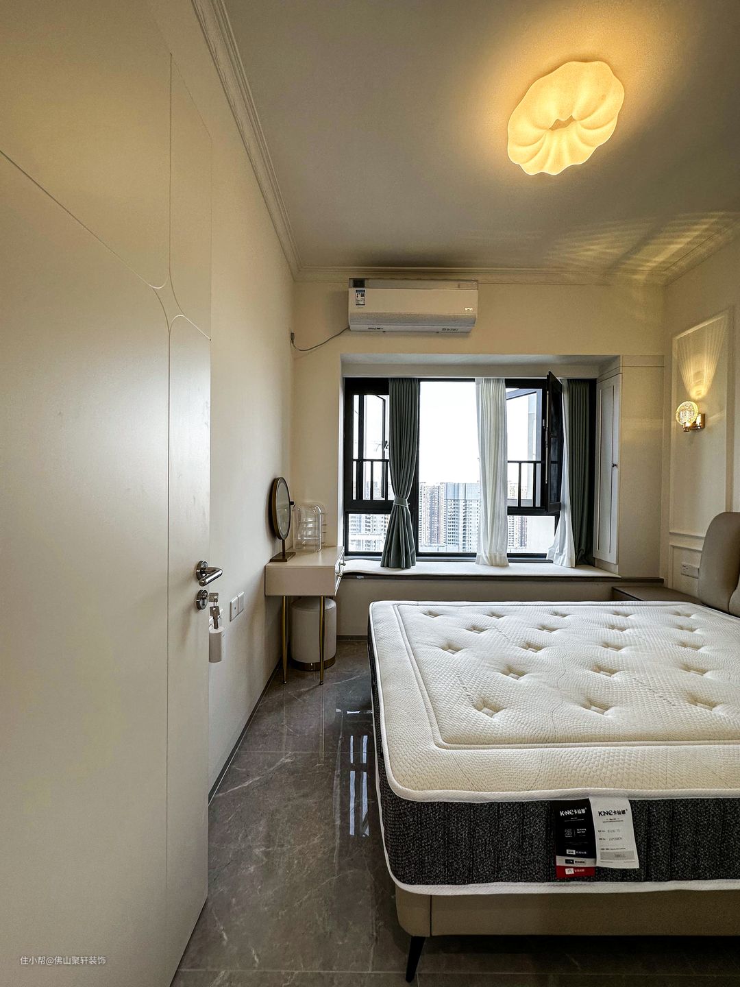 现代ins风次卧+卫生间,轻松活泼的时尚之家佛山聚轩装饰2023-08-30次卧虽小,但五脏俱全,米白色的大床和嵌边的衣柜形成了一个简单清明的空间结构,减少空间浪费的同时,也增加了储物功能。卫生间主要讲究的是干湿分离,两者互不干涉。但本案的这个卫生间在设计方面有所不同,它没有过度针对干湿分离状况,反而注重舒适便捷。