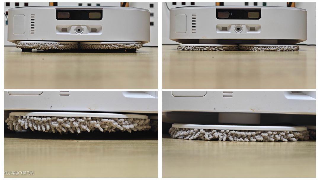 因为我家没有地垫,所以没法给大家做地垫抬升测试,把两个拖布放到最顶与最底部位置,落差如上。