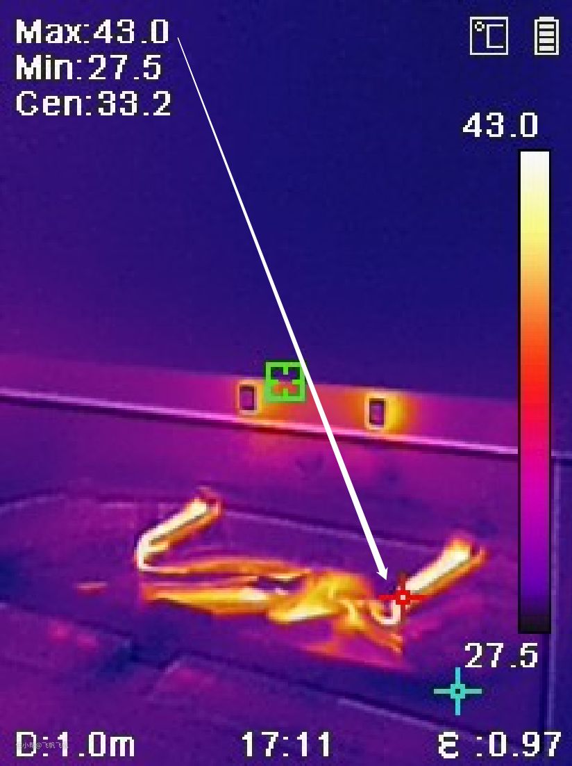 在搬离扫地机后,测试在自清洁中出水口最外部温度有43°,如果机器人在舱内处于半密封状态温度还会更高。