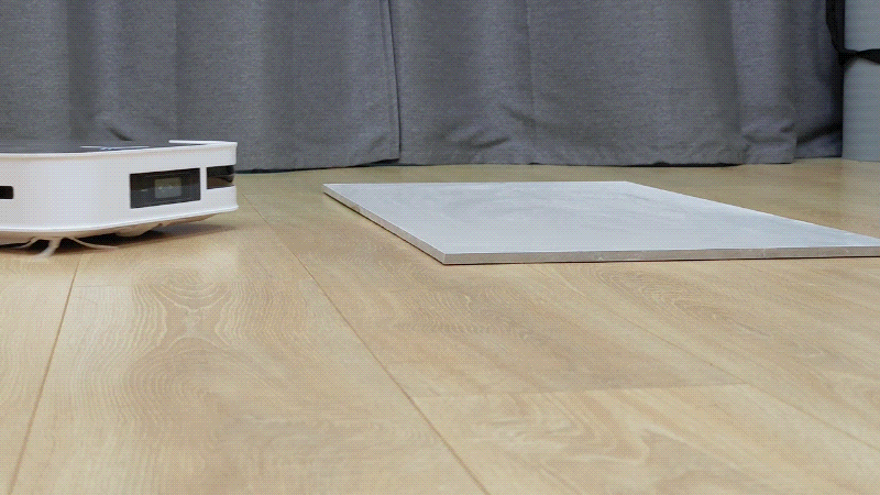 而越障能力上,其实大部分家庭落差就是厕所的门槛石,高度一般不超过10mm,所以越障能力上大家完全不用担心。我这里用一块瓷砖做测试,加上底部纹路高度约10mm,毫不犹豫X2就上去啦!