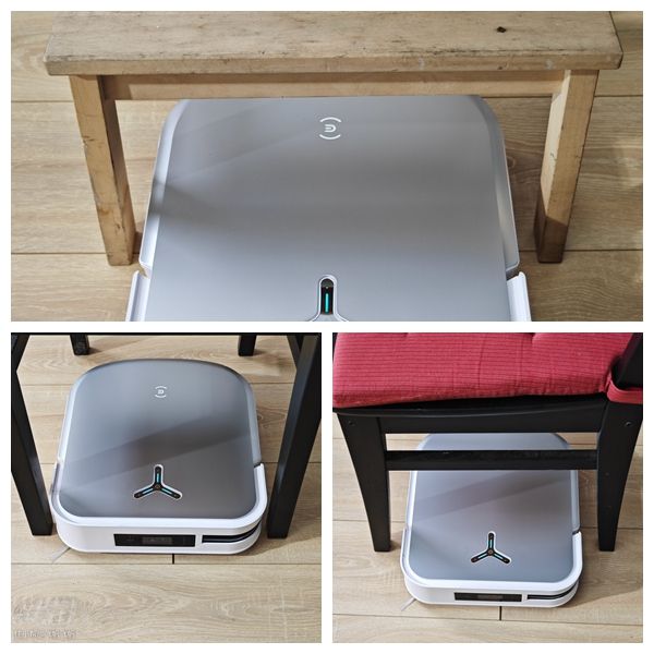 这是我家里宜家的凳子与餐椅,以往圆形的扫地机器人都没法进入椅子底下,从上图来看,大部分椅子都刚大于X2的宽度1-3CM,X2恰好都可以穿过去。