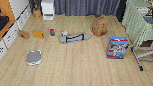 我以已经建图的空旷客厅做例子,临时添加障碍物下,X2启动清扫后没有较多的犹豫,直接就出去了。