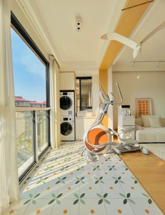 第四,阳台不要铺木地板,刚铺完的效果确实很不错,但是长期太阳暴晒,会造成地板老化、褪色、起翘,而且大家在阳台晾衣服可能会滴水,那么地板很容易受潮,忘光窗户雨水飘进来就更严重了。