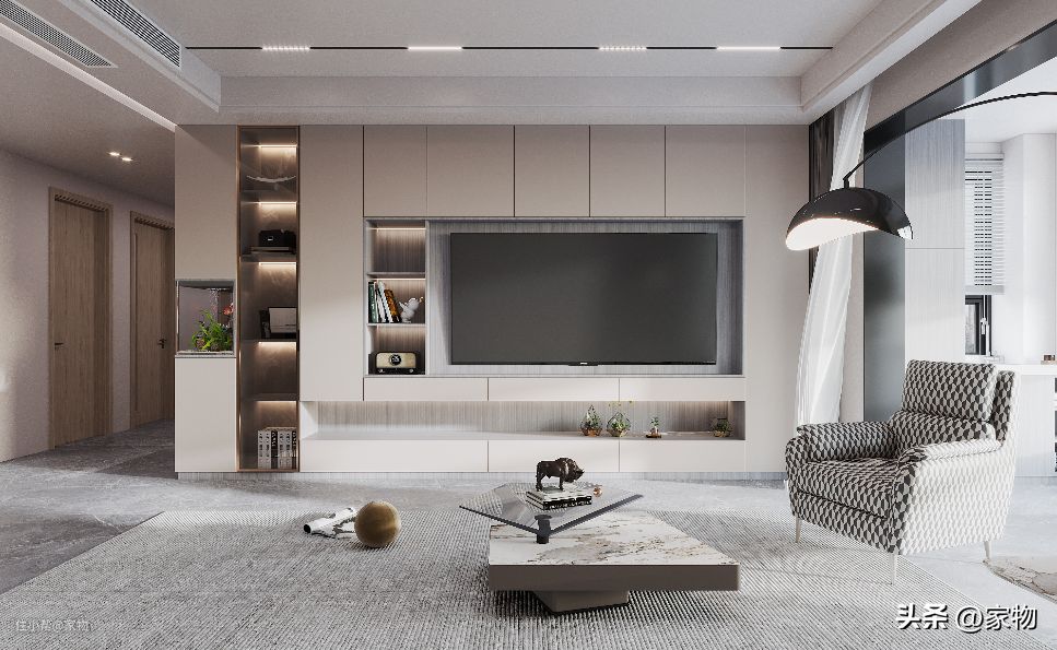 在打造轻奢风居室时,硬装要选是带有高级感的中性色为主色调,例如米白、奶咖等,既美观大气又方便和软装做搭配。