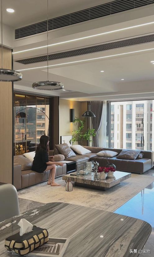 除了整装统一外,轻奢风家装也可以在家具等软装材质上优先选大理石、金属、皮革、水晶或丝绒,这几种材质自带轻奢氛围感,运用到家中可以瞬间提升档次,知名家居博主、好莱客潮家屋主@耶萌 的家就是采用这种设计理念,营造出精致轻奢感。