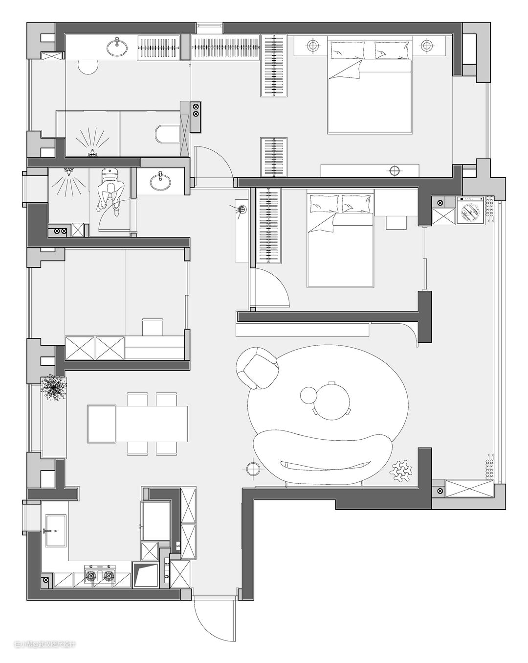 我们摒弃复杂造型,用精简的直线条打造空间层次感,局部墙面、家具的弧度给整个室内带来柔和与舒适。