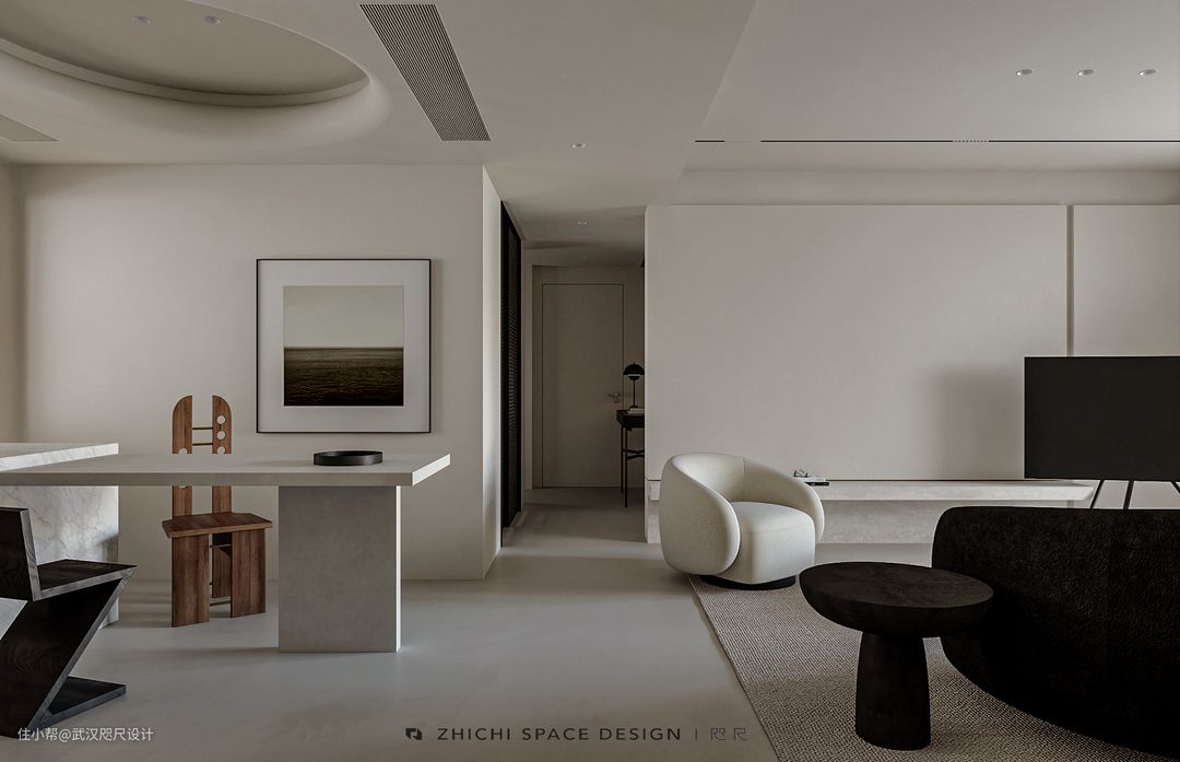我们在勒·柯布西耶的功能主义和大胆的雕塑细节中汲取灵感,将室内赋予建筑雕塑感的同时,在传统三维空间里融入第四维——心灵感受,期望在感性与极简主义之间取得平衡。