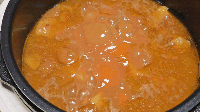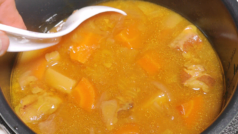 选炖肉模式35分钟,开锅时发现汤汁还不够浓稠,于是又开启“开盖收汁”功能。
