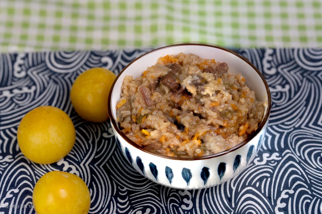 我平时喜欢吃偏软的饭,所以煮出来的效果是这样的~胡萝卜、洋葱已经软烂得不行,羊肉也很合适!