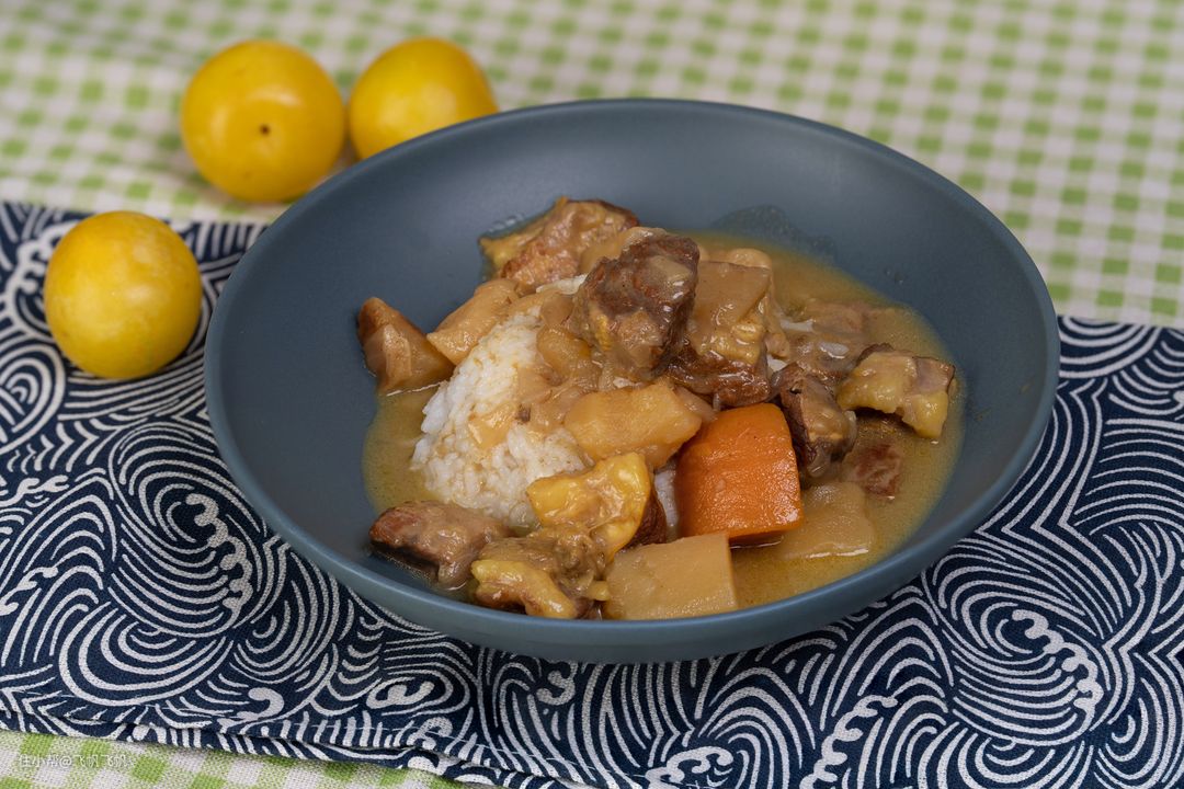 食材:牛腩(可用鸡肉、猪肉)、咖喱、土豆、胡萝卜、洋葱、椰浆(可不放)