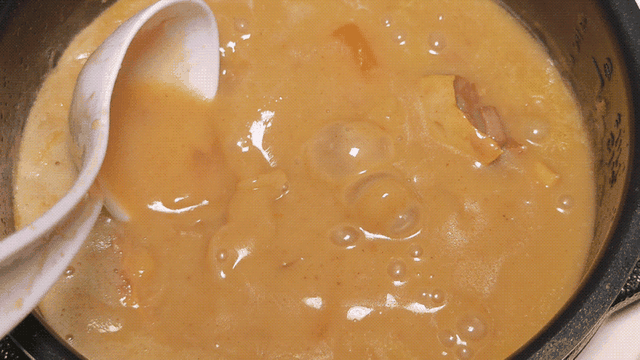 这个火力没有很大,不会起很大的水泡溅到人,很适合一群朋友围炉吃~