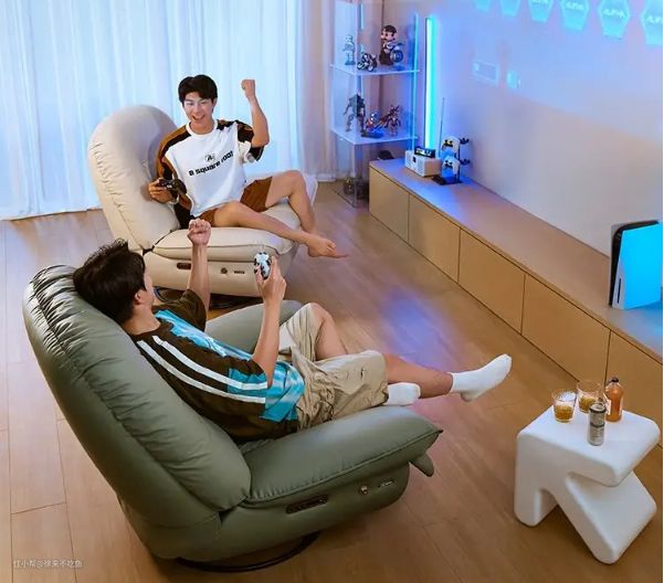 和朋友一起,两个对面大屏幕玩PS5等游戏,或者一起追剧,躺在宽大柔软的G085懒人沙发中,沉浸在沙发慢慢摇晃的节奏中,一边喝着可乐,一边互相讨论剧情等等,各种舒适感爆棚。