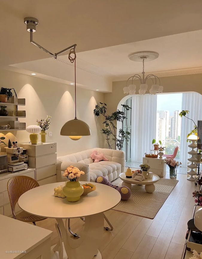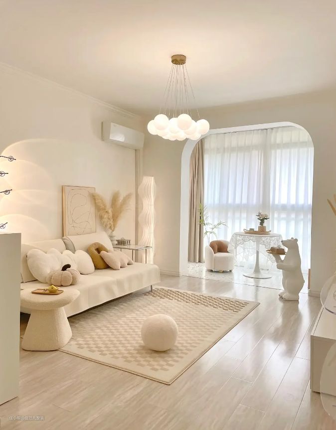 奶油风的一大特质,是硬装偏基础款,看腻了可以更新软装部分换换口味。