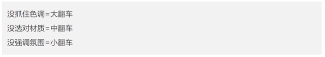 想要复刻当下流行的奶油风,推荐从色调、材质、氛围三个方向的设计要素入手。同样,已经翻车的小伙伴也别灰心,可以从三个角度再抢救一下。 结合前文提到的不同程度的翻车案例,我们不难看出:面积占比越大的单品,翻起车来越狠。 如果按照面积占比大小来排序的话,可以归纳为: