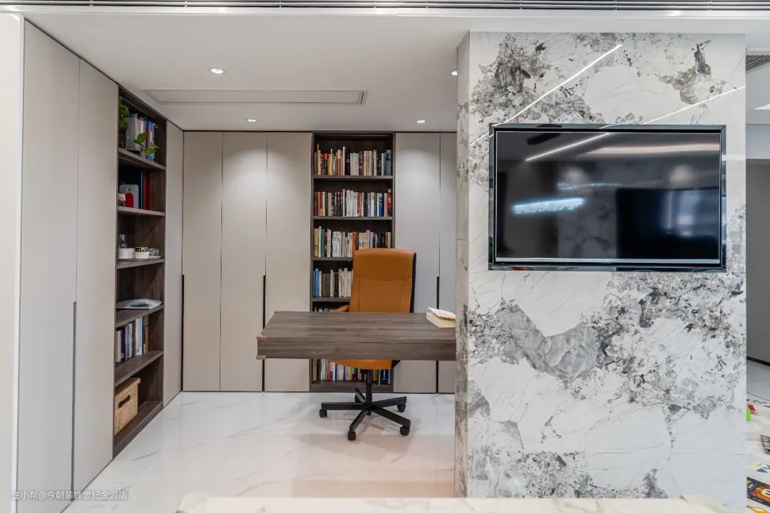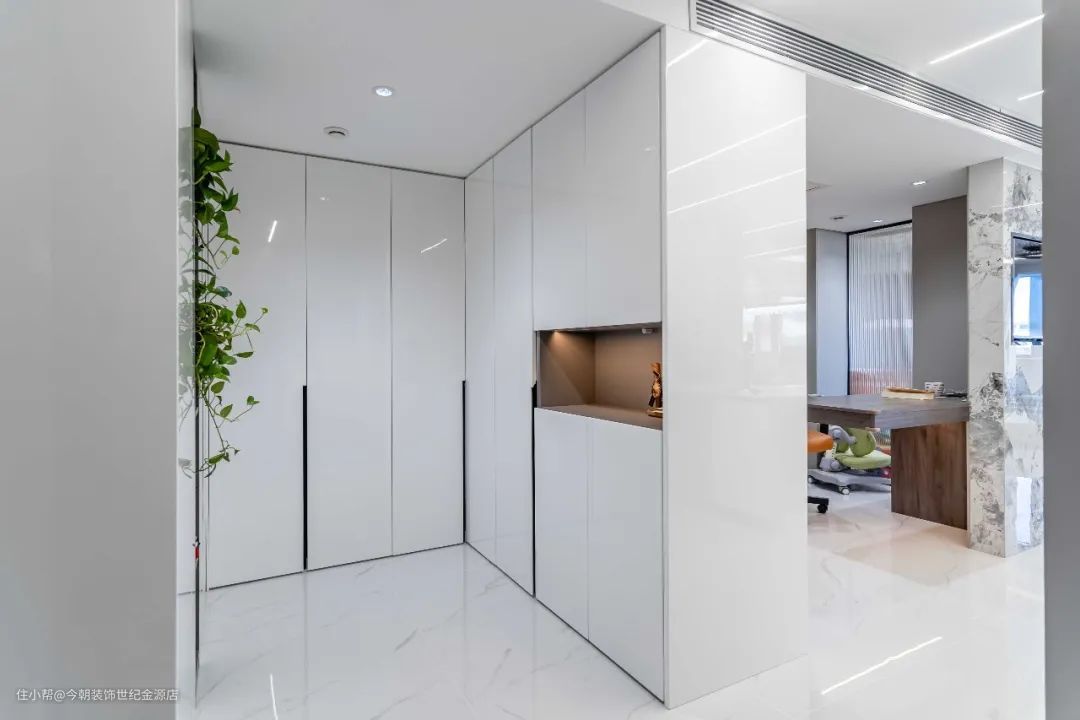 上下连贯,左右连续的通顶柜门,形成的多层次块面,让空间的整体性更强。