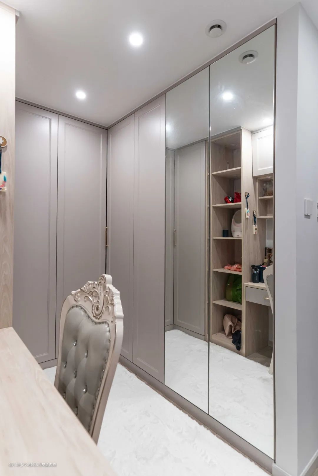 垂拔挺立的柜门,除去了把手的多余突兀感,给人的第一感觉更像是做了抽缝的墙面。线条也为整体面积赋予了层次感和流动感,让整个柜门看上去并不会单调乏味。