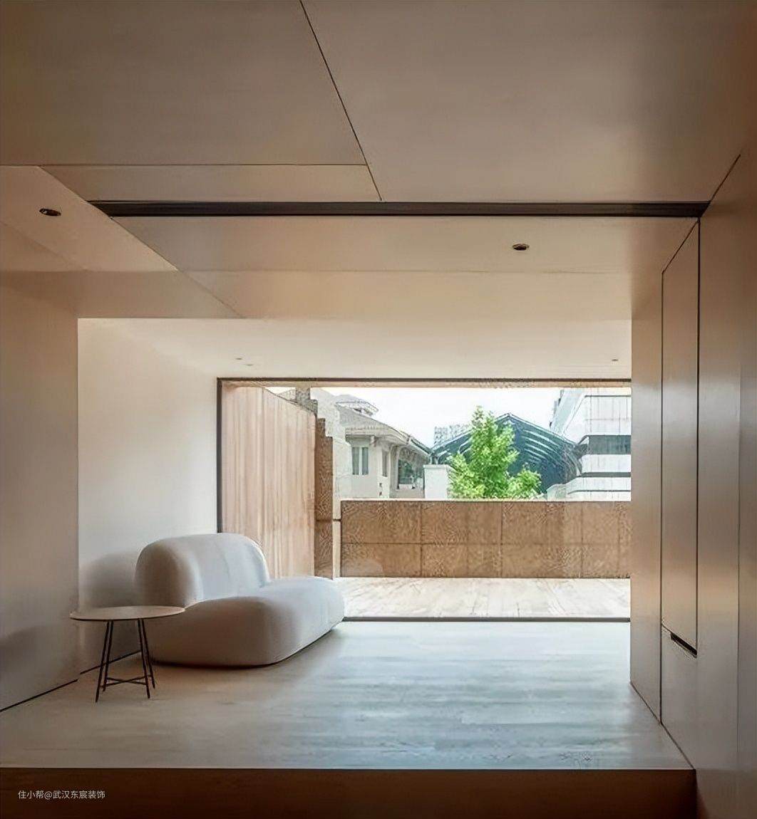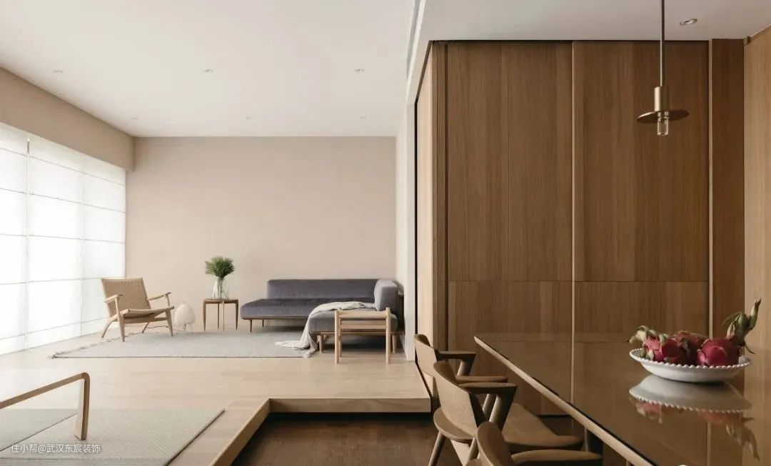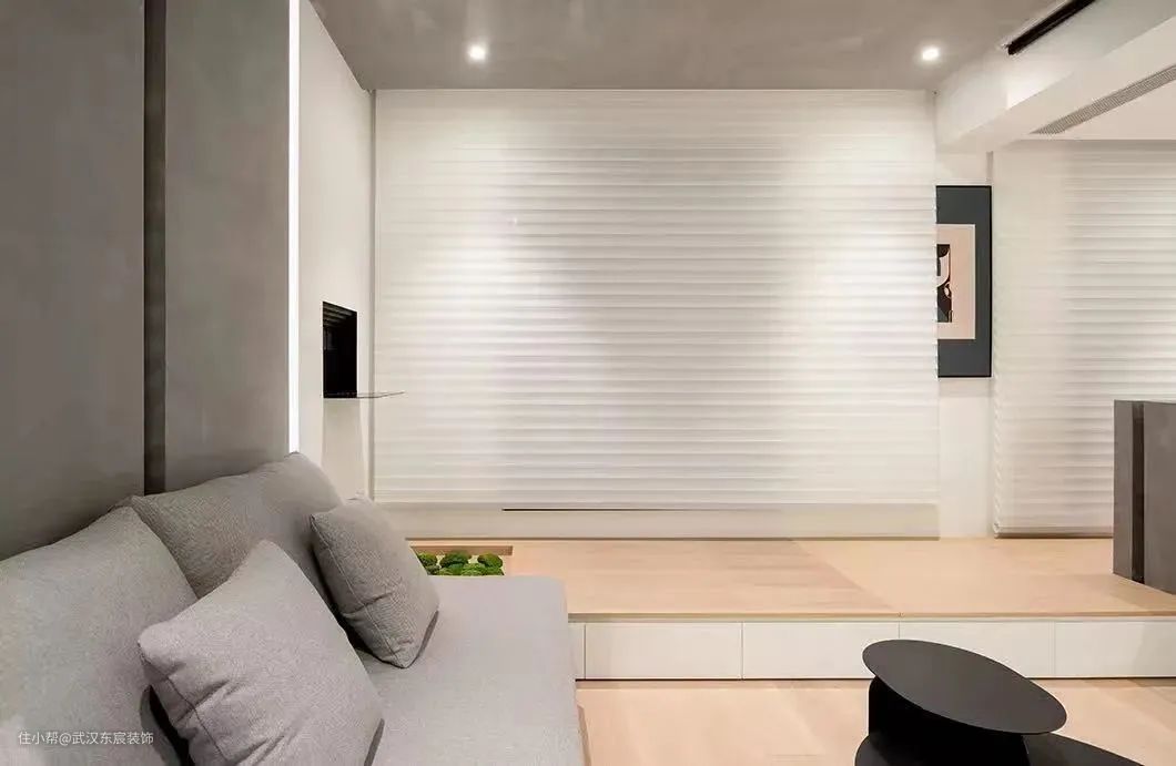 地台最常见的就是选择木材,木材温润,有质感,又很容易营造温馨的氛围。当然,潮湿的确我们是不建议选择木材的,石材也是可以的,铺上垫子,也是不错的选择。木制地台需要刷防水,刷防火层,需要打龙骨,而且承重有限,不要放重物。