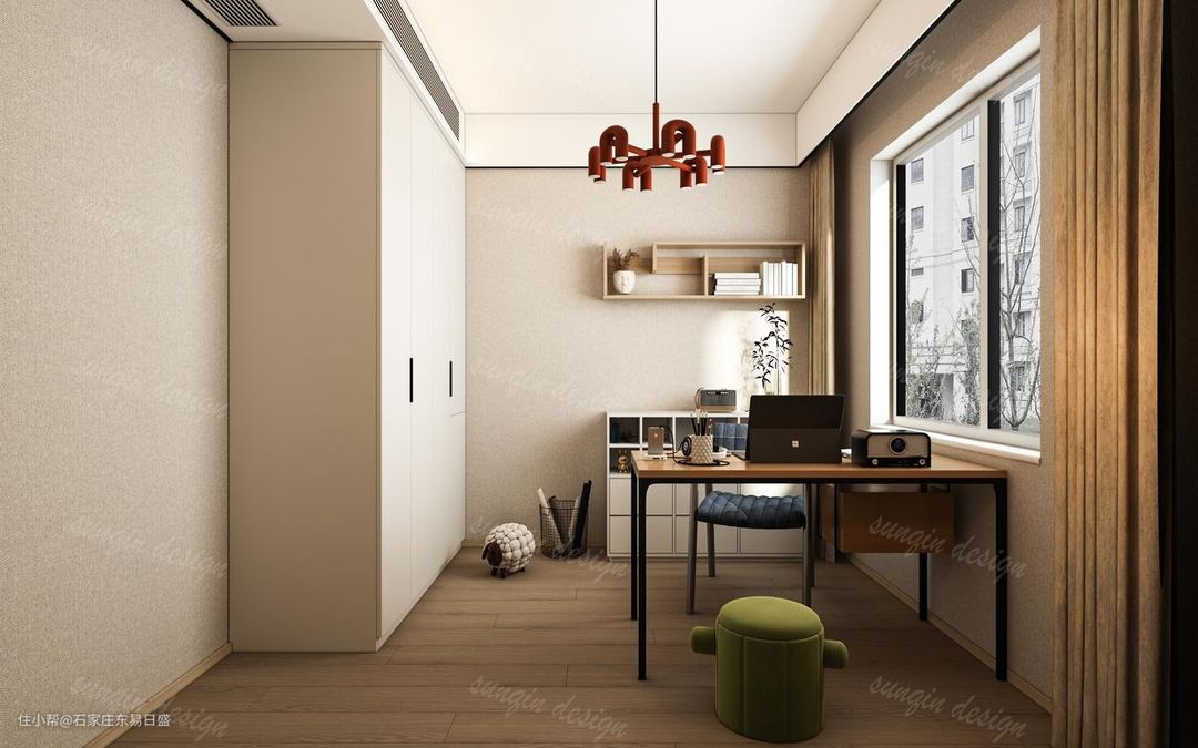书房以成品家具为主,空间后期灵活改动性较强。搭配色彩丰富的灯饰与家具,营造了一个丰富多彩的读书空间。