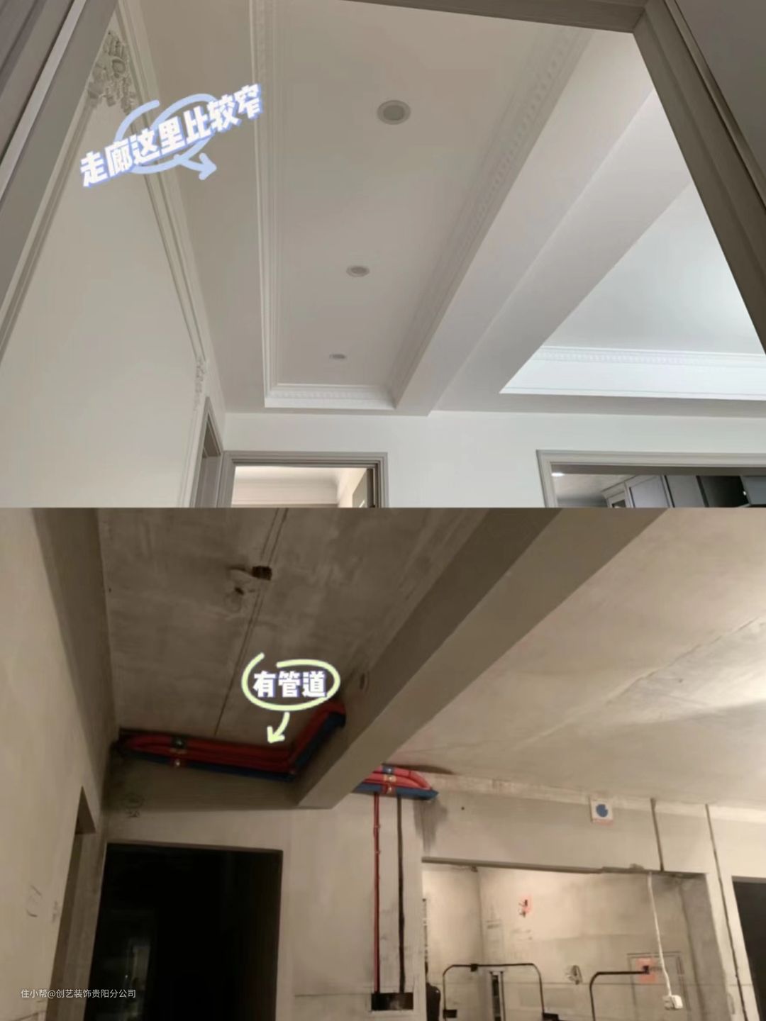 💡装了中央空调 ,所有装了管道线路空调内机的地方都需要配合着去吊顶 ,所以如果家里有安装在吊顶里的电器(空调新风系统等),一定要让安装电器的师傅尽可能的往高处安装,这样可以避免吊顶的尺寸太大,影响颜值的同时又压层高。