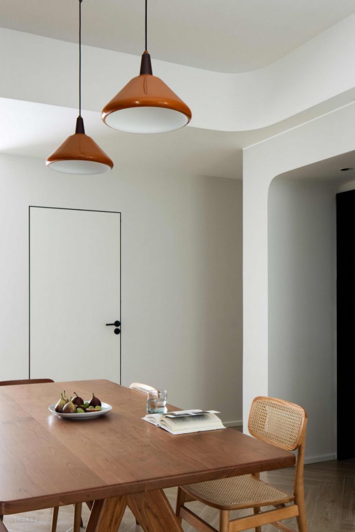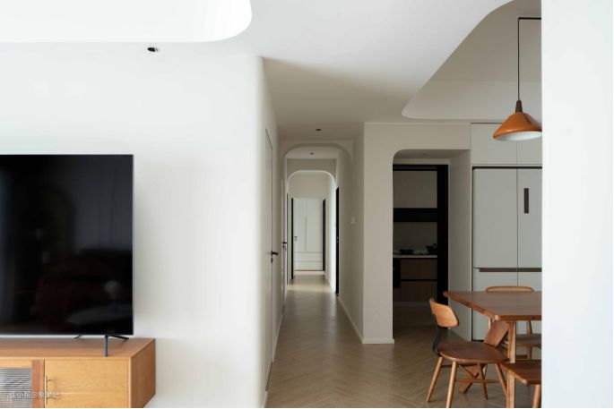 今天给大家分享一户现代极简风新家的厨房门+客厅吊顶。它们就巧妙运用弧形造型,减少棱角锐感的同时增强了空间的顿感,使整个公共空间变得更加柔和了🍃