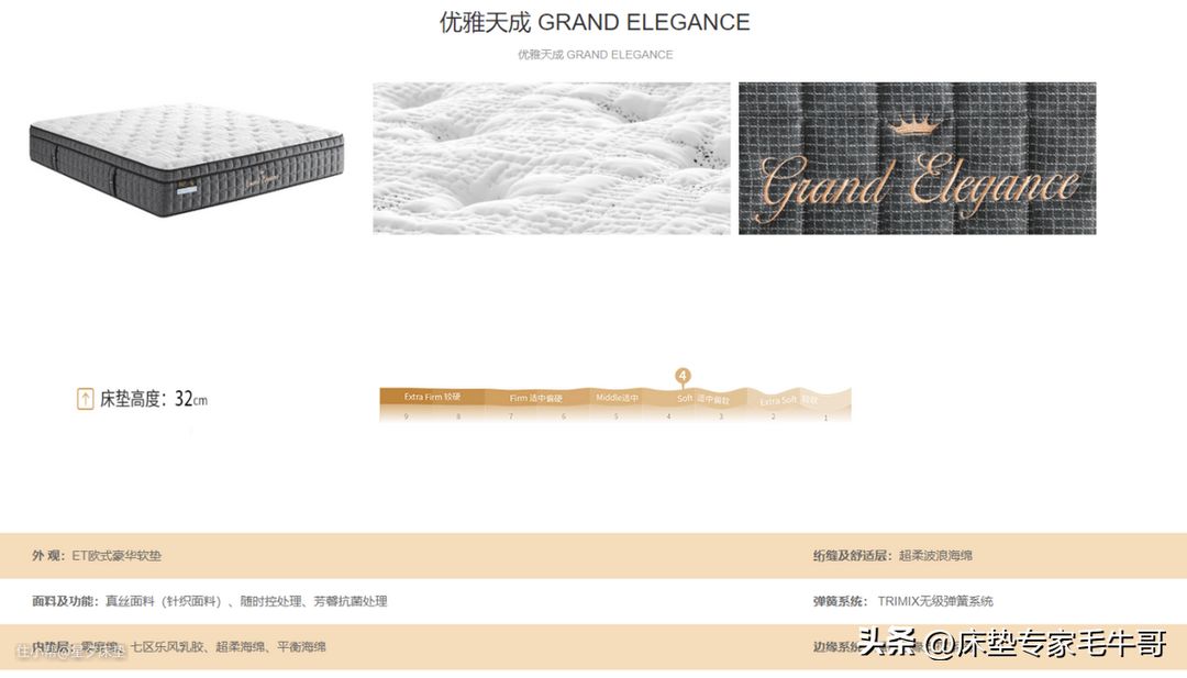 优雅天成是金可儿线下热销的款式,优雅天成Ⅱ是在此基础上的升级款。他们本身都是偏软的睡感,一般喜欢睡软床的人买得比较多。