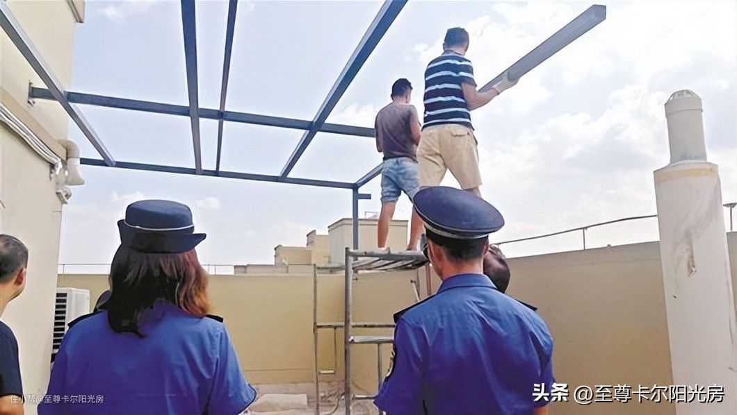 1,搭建的人越来越多,使用的材料五花八门,特别是玻璃材料,有自爆的概率,更有甚者改变房屋结构,造成危房、危楼。国家颁布法令,不能不经过审批就随意更改房屋的建筑用途,否则就是违建。