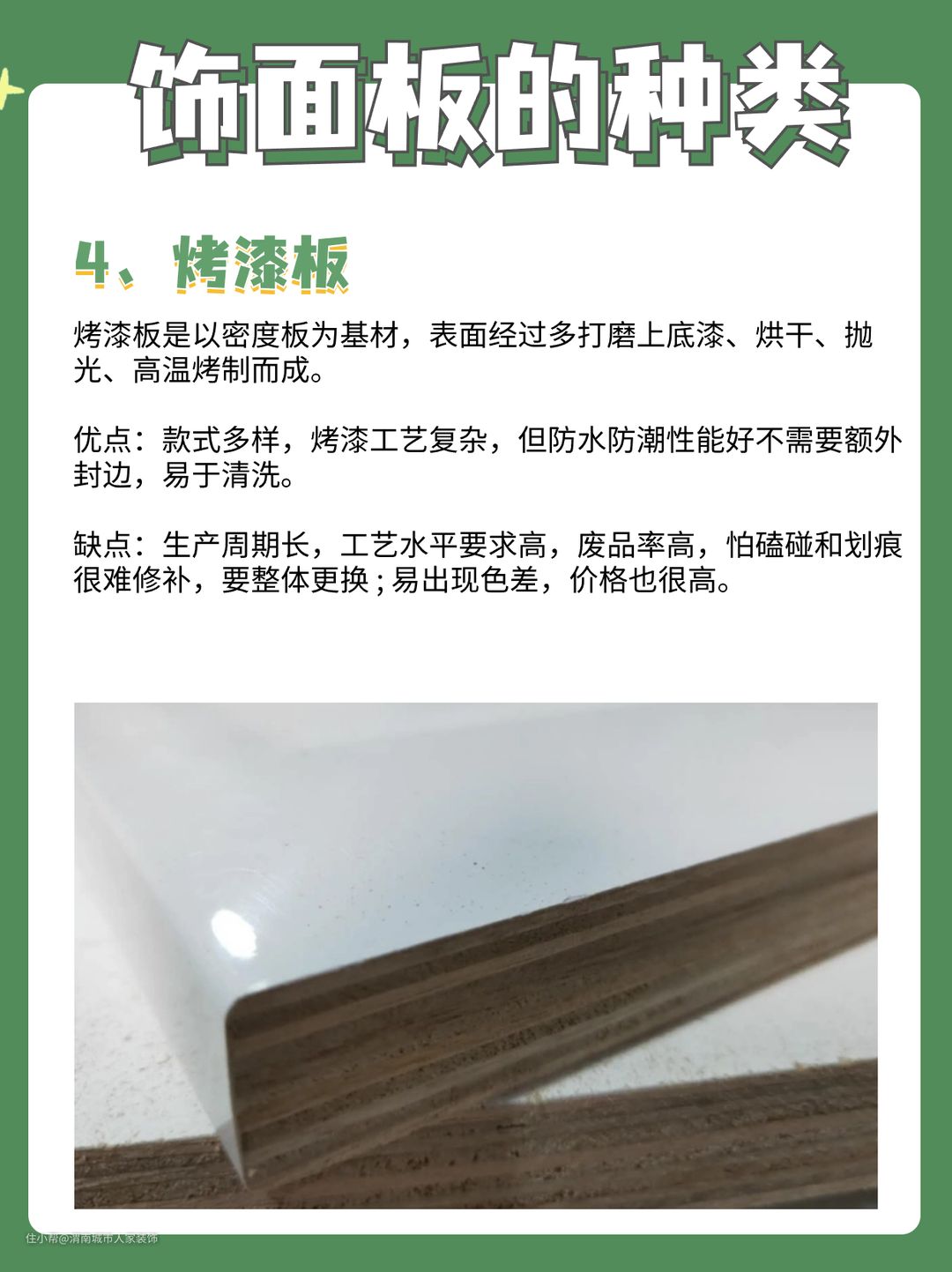 再来看看烤漆板,烤漆板的款式多样,方便清洗,但是容易出现色差,而且费用方面也是比较高的。