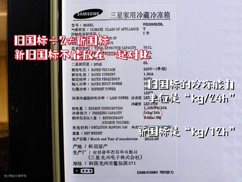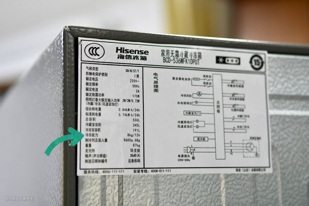 可惜的是,绝大多数冰箱并不会像空调的制冷量一样,把冷冻能力标注在显著位置。但不妨碍这个参数的重要性,买冰箱时建议仔细找一找(标注在冰箱背面的铭牌上)。