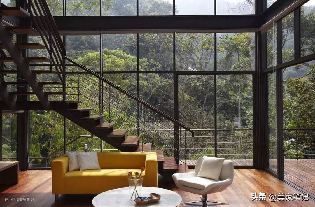 如果你买的是高层大跃层,或者是自带院子的房子,千万别浪费了户外景观,做一面落地玻璃窗会带来恢宏绝美的视觉效果。