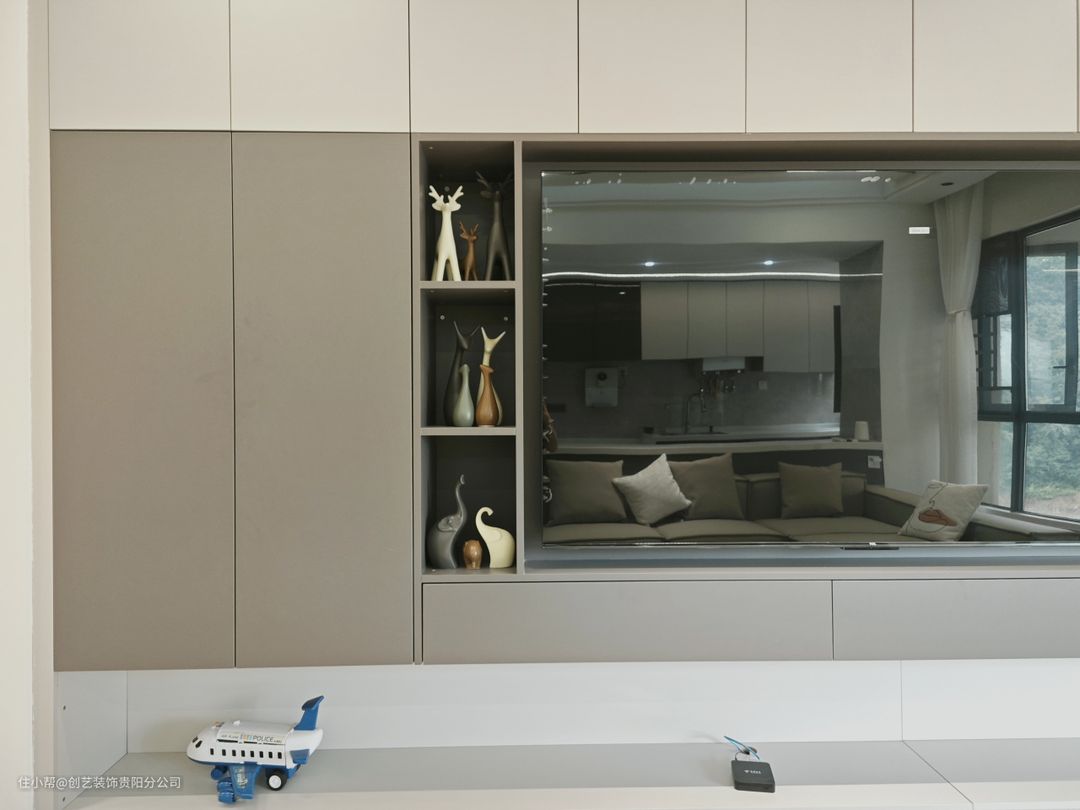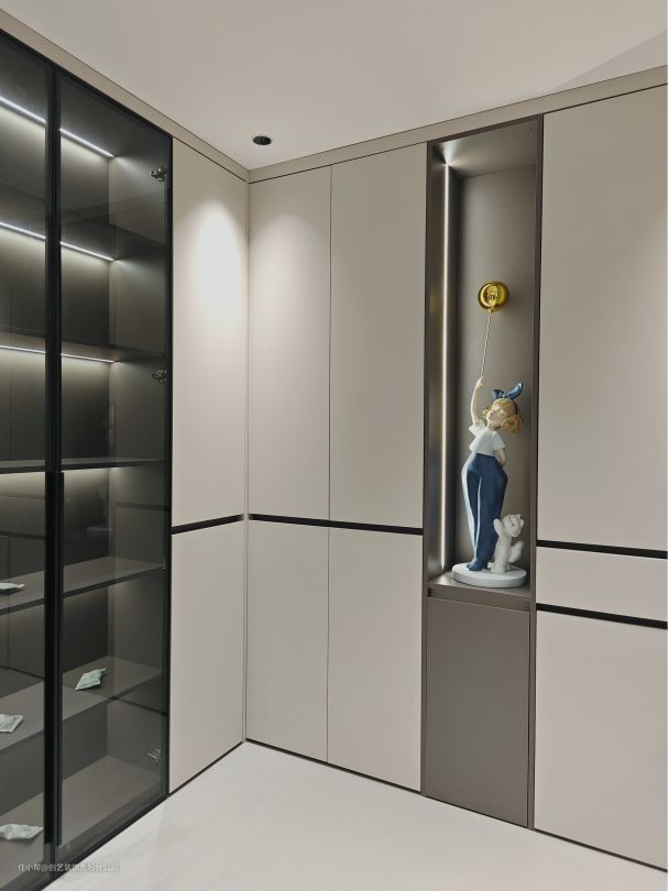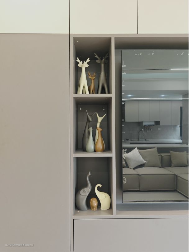 ♦ 中间中部留空做开放格,放置可可爱爱的艺术摆件,夜晚回家的仪式感直接拉满~
