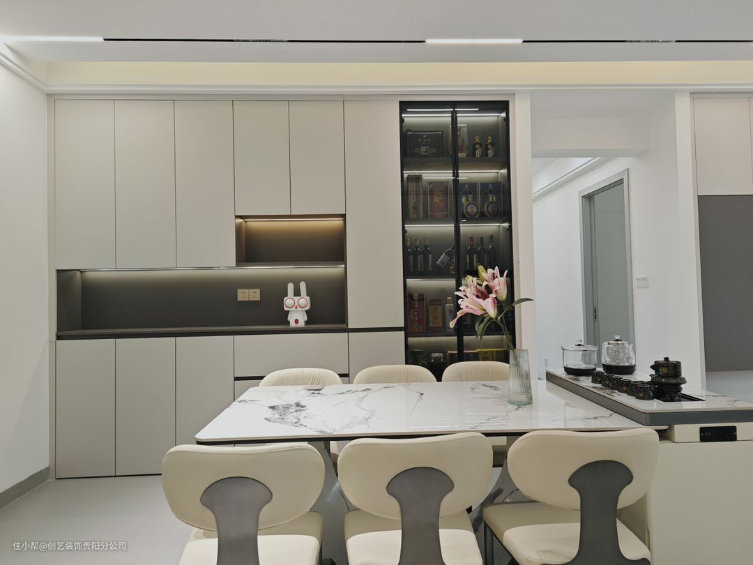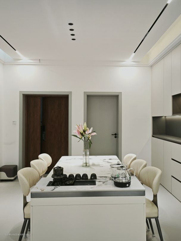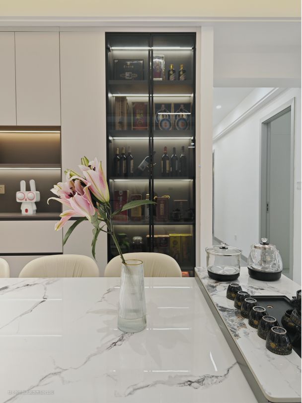 ✨ 与客厅的色系和谐搭配,用大理石增加了整个餐厅的质感,让享受美食也能有娴静的氛围;