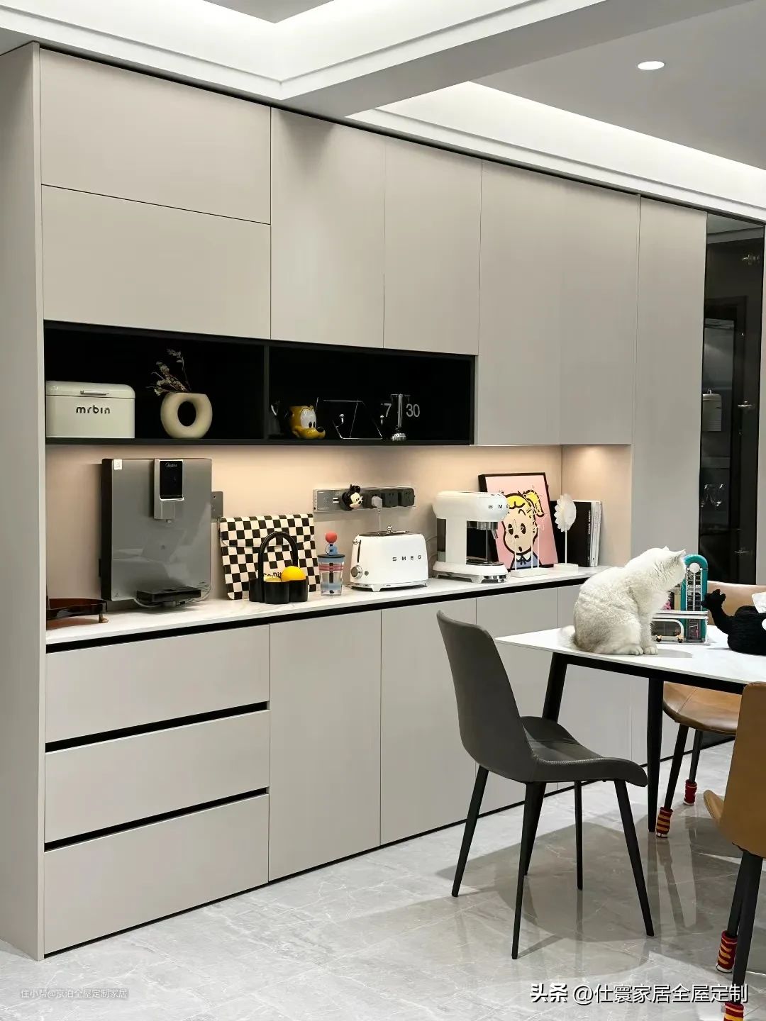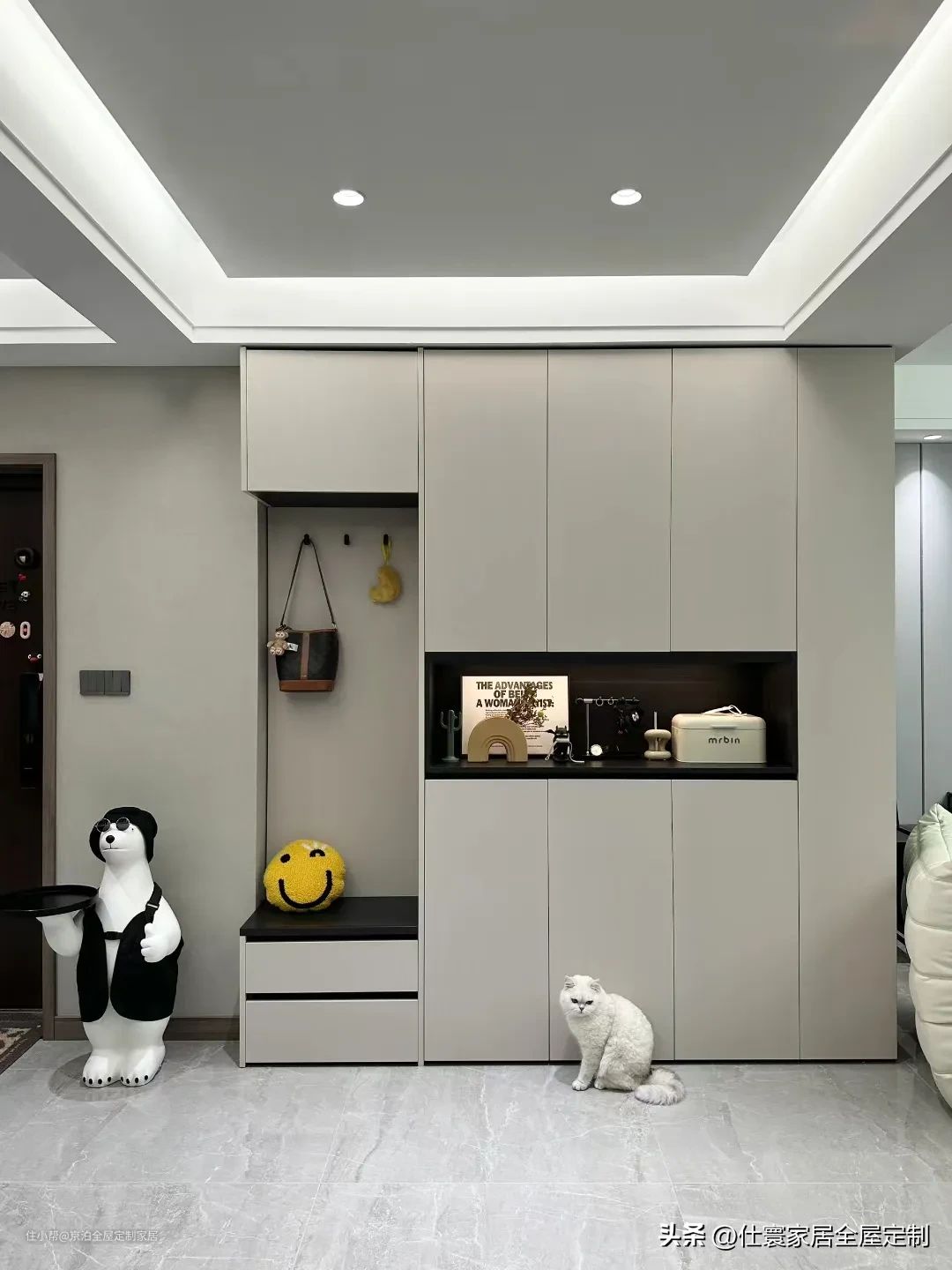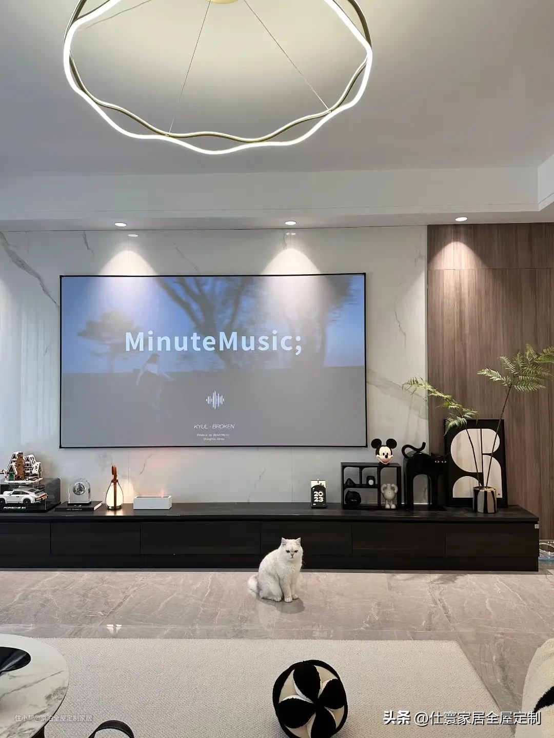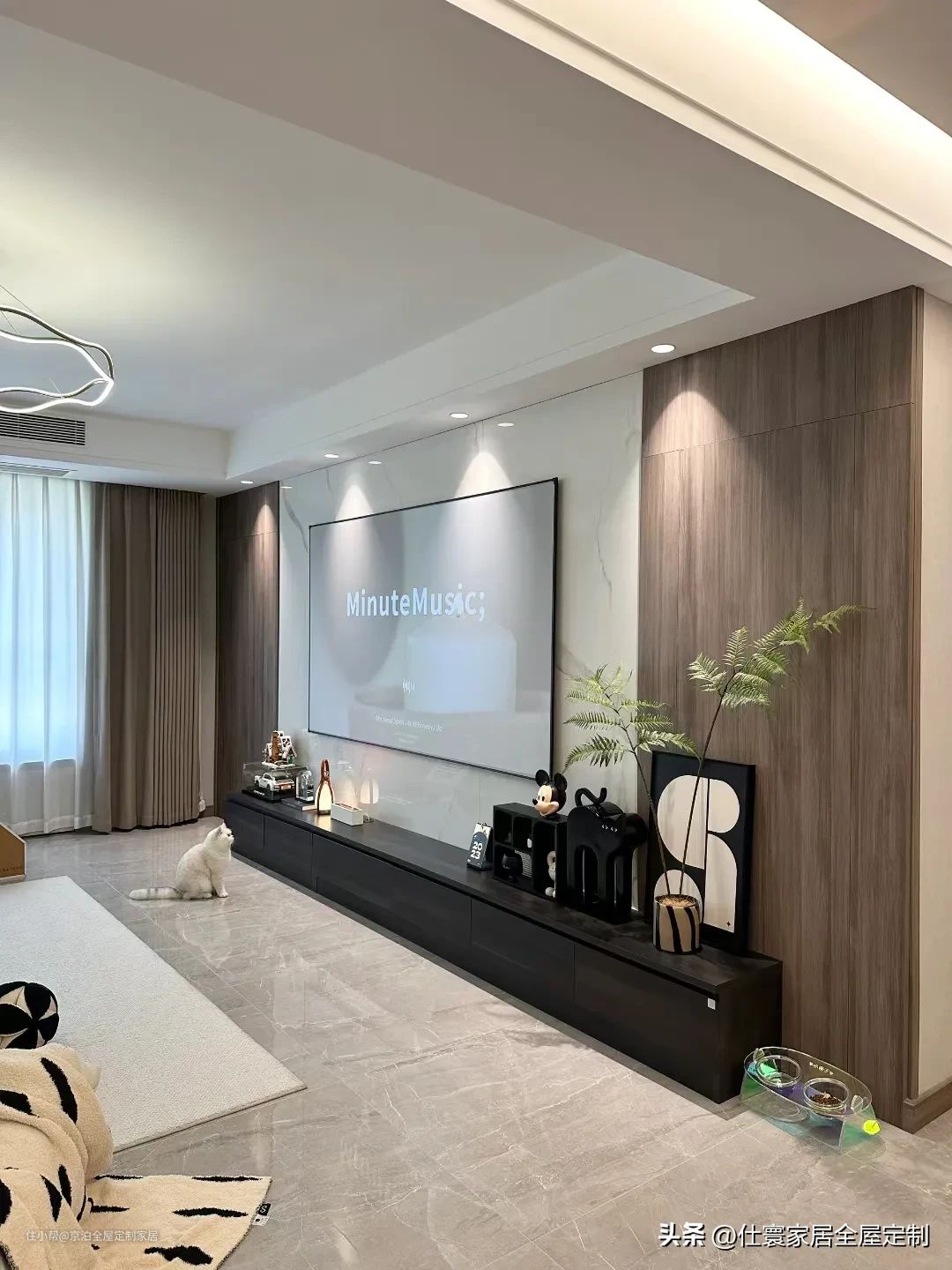 深色柜体浅色柜门,撞色设计,又开始流行了。落地电视柜也回来了,柜体柜门同色,简单有质感。