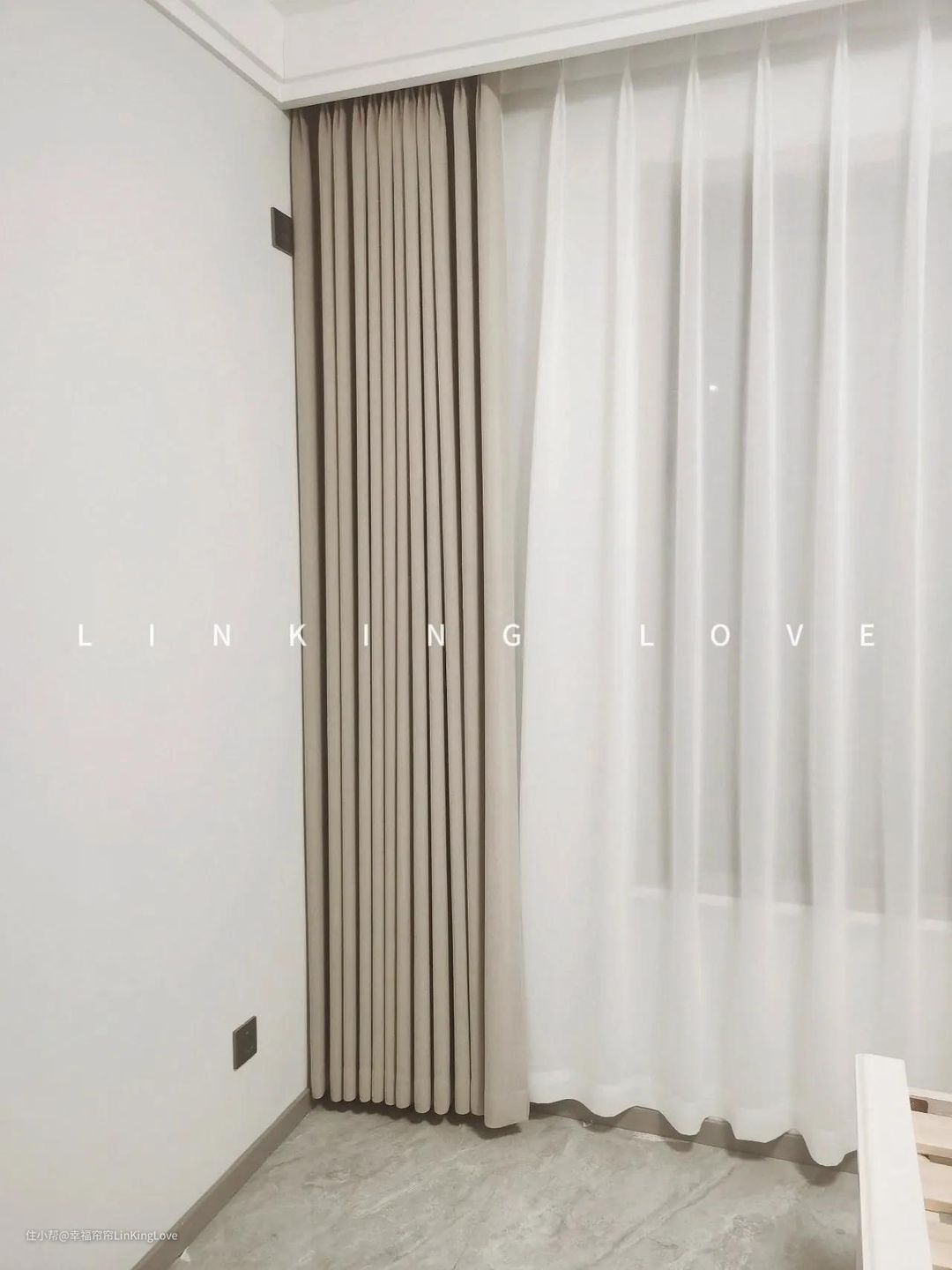 做的韩式加工,好看规整,挂钩还能调节长短,也不怕测量尺寸上的小误差,做的2倍褶,视觉效果很舒服,推荐业主距离地面是2cm,美观好打扫卫生。