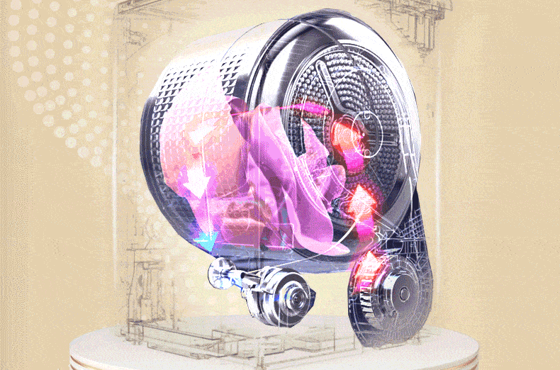 洗衣机烘干机的噪音,主要来源是电机传动和衣物金属拉链与筒壁碰撞声,所以降噪方面也是从这2个角度入手。