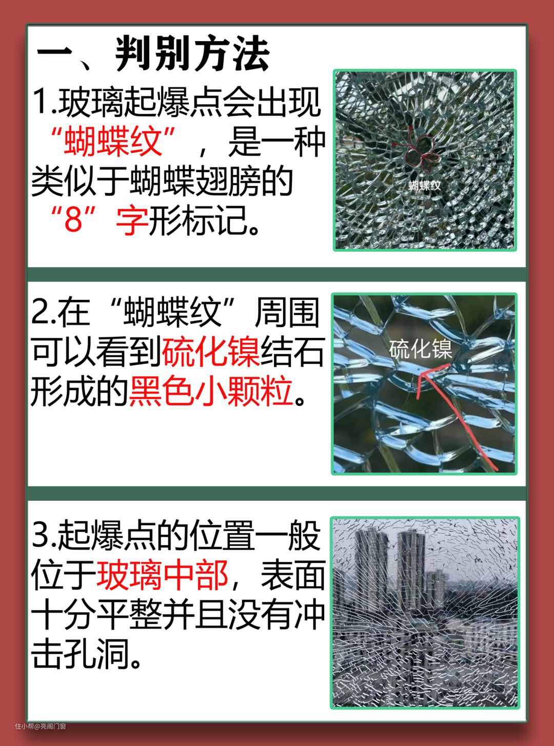 1.玻璃起爆点会出现“蝴蝶纹”,是一种类似于蝴蝶翅膀的“8”字形标记。